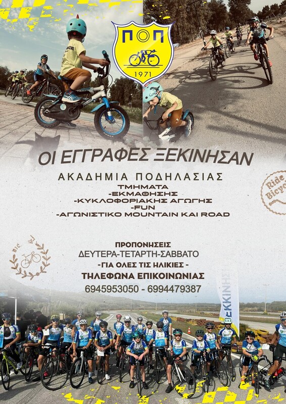 Εκμάθηση ποδηλάτου απο έμπειρους προπονητές με ειδίκευση στο άθλημα της ποδηλασιας για παιδιά μικρών ηλικιών. Λειτουργούν αγωνιστικά τμήματα με συμμετοχή σε αγώνες σύμφωνα με το αγωνιστικό προγραμμα της Ελληνικής Ομοσπονδίας Ποδηλασίας.