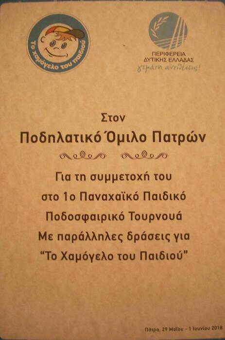 Ο Π.Ο.ΠΑΤΡΩΝ ΣΥΜΜΕΤΕΙΧΕ ΣΤΟ 1ο ΠΟΔΟΣΦΑΙΡΙΚΟ ΠΑΝΑΧΑΙΚΟ ΤΟΥΡΝΟΥΑ ΜΕ ΠΑΡΑΛΛΗΛΕΣ ΔΡΑΣΕΙΣ ΓΙΑ ΤΟ "ΤΟ ΧΑΜΟΓΕΛΟ ΤΟΥ ΠΑΙΔΙΟΥ"